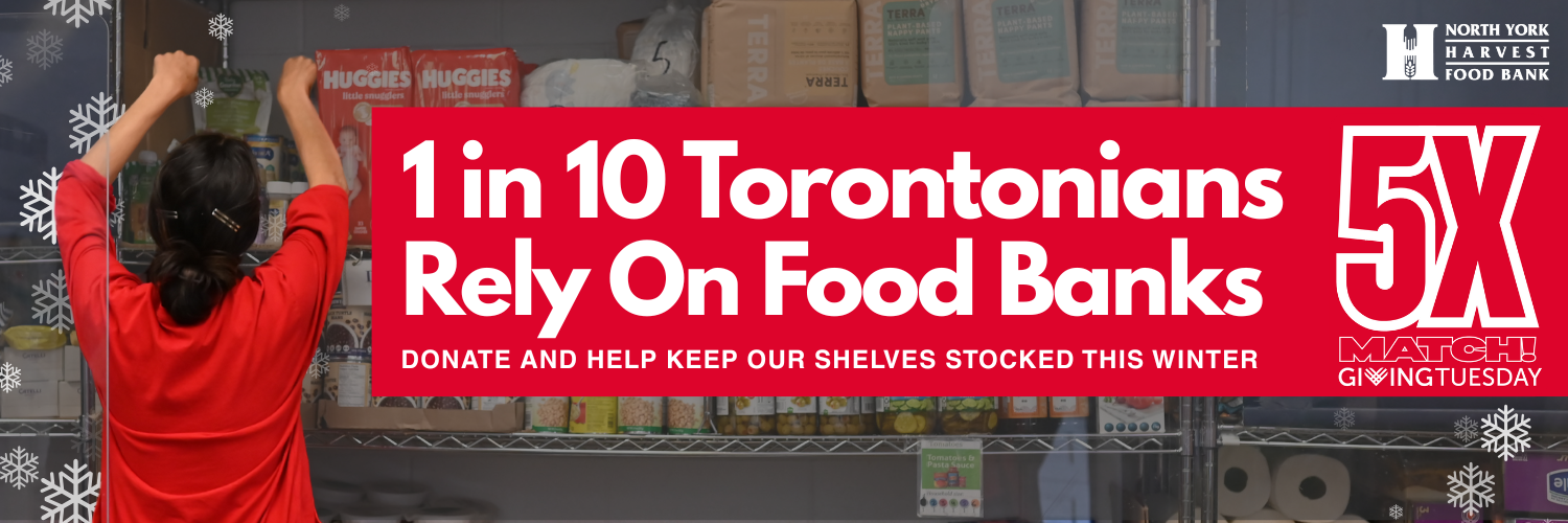 Food insecurity in Toronto has reached emergency levels. Each month, more than 30,000 people rely on North York Harvest Food Bank and our network of community partners. Our warehouse is at full capacity and can no longer keep up with the growing demand.