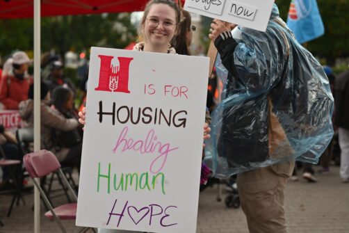 On Thursday, October 23, hundreds of people from food banks, drop-in centres, meal programs, community organizations, and disability justice and housing advocates took over Queen’s Park to demand a rent freeze, raising the minimum wage, and higher social assistance rates.